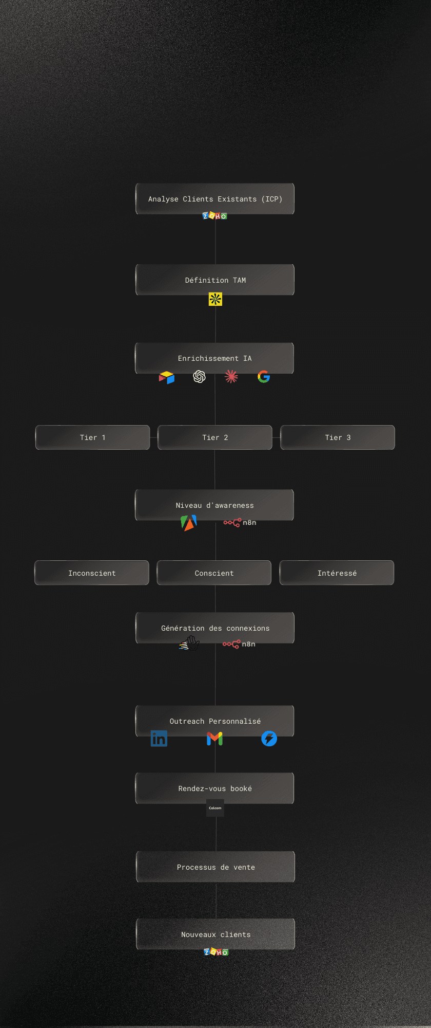 On combine IA et expertise pour construire et piloter des systèmes qui remplissent votre agenda.